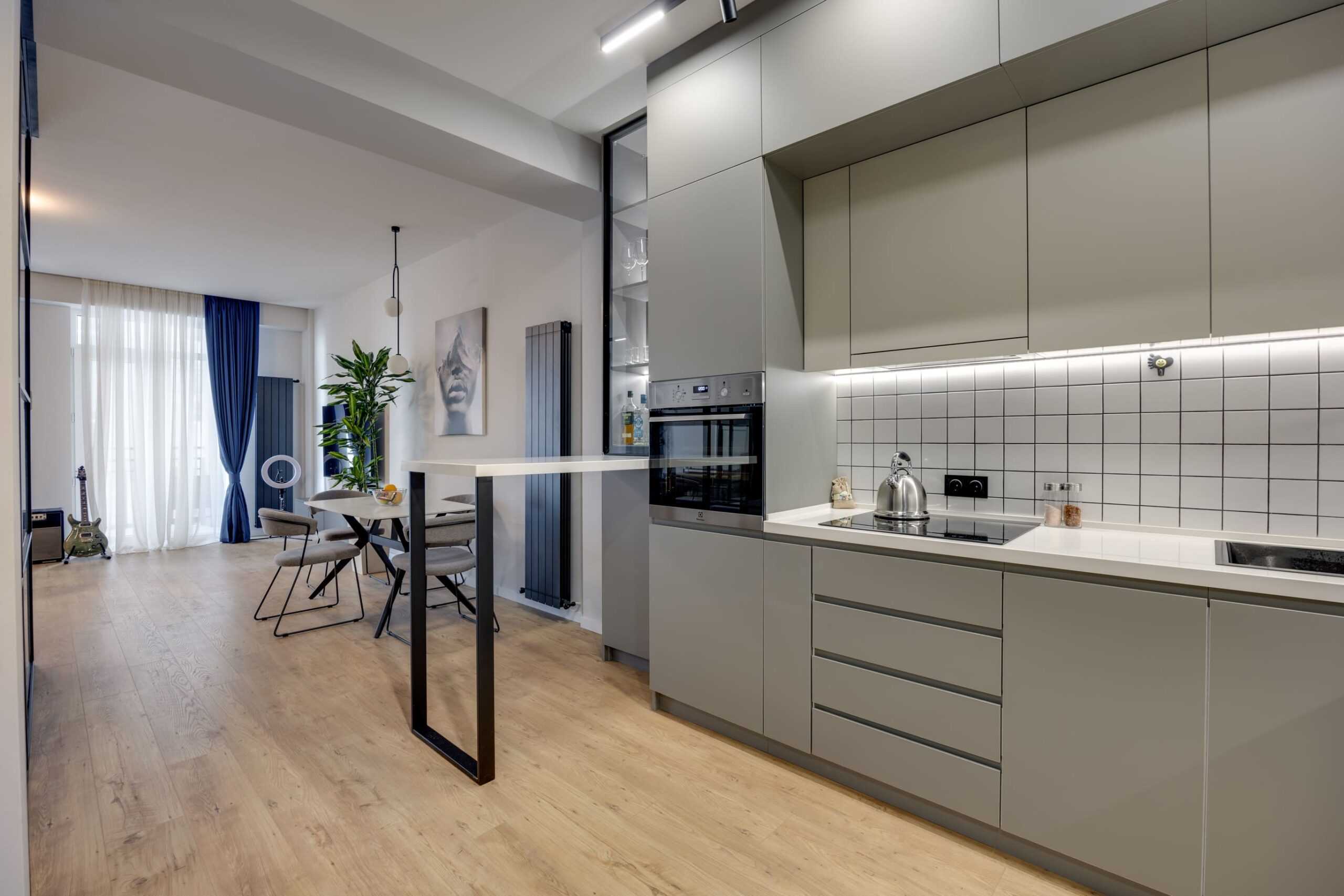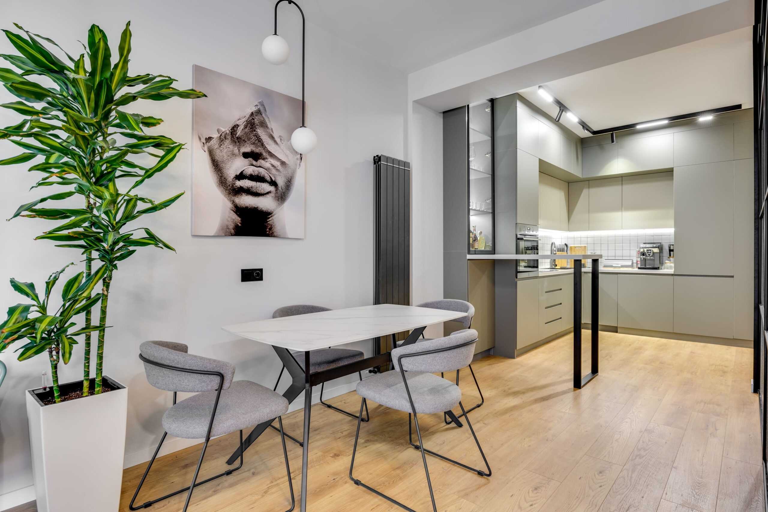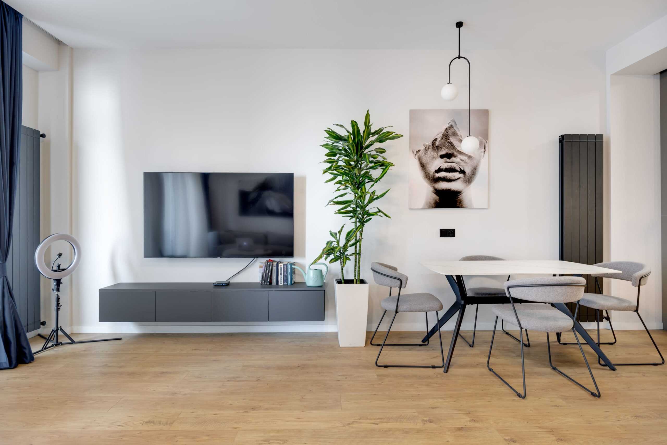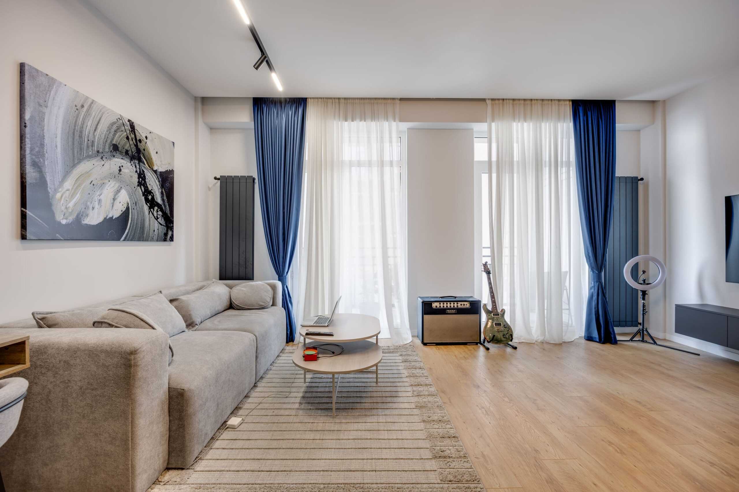 This space seamlessly merges modern design with practicality, creating a tranquil and inviting atmosphere. The bedroom creates a peaceful atmosphere, with a glass partition offering an ideal balance of openness and privacy, allowing the room to feel light and expansive. Every detail of this home has been thoughtfully designed to create a harmonious blend of modern style and comfort, where style and comfort coexist in perfect harmony.